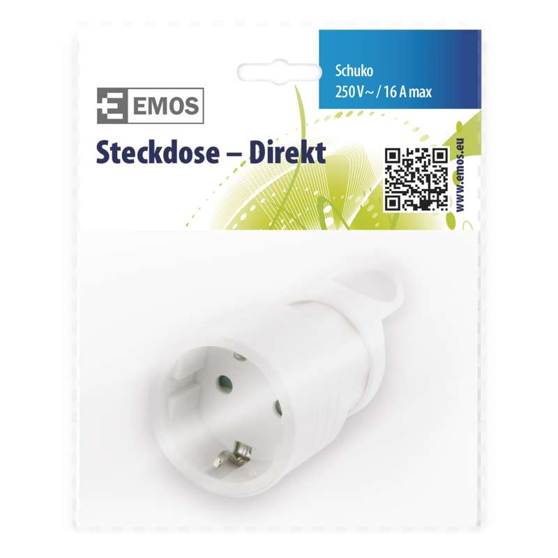 Praktikus SCHUKO aljzat egyenes csatlakozóval, fehér kivitelben hosszabbító kábelhez.